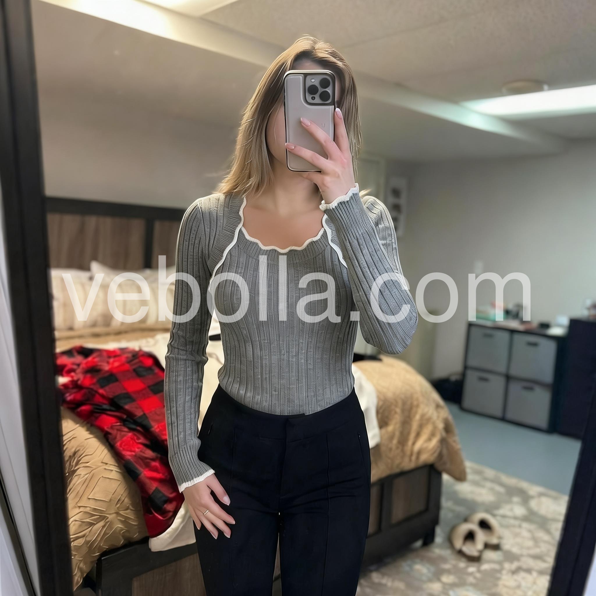 Stay cozy and stylish with our Grey Square Neck Long Sleeve Sweater. Made with high quality materials, this classic sweater offers a snug fit and an elegant square neckline. Enjoy the warmth and comfort of long sleeves, while looking effortlessly chic. Perfect for any occasion, this sweater is a must-have for your wardrobe.