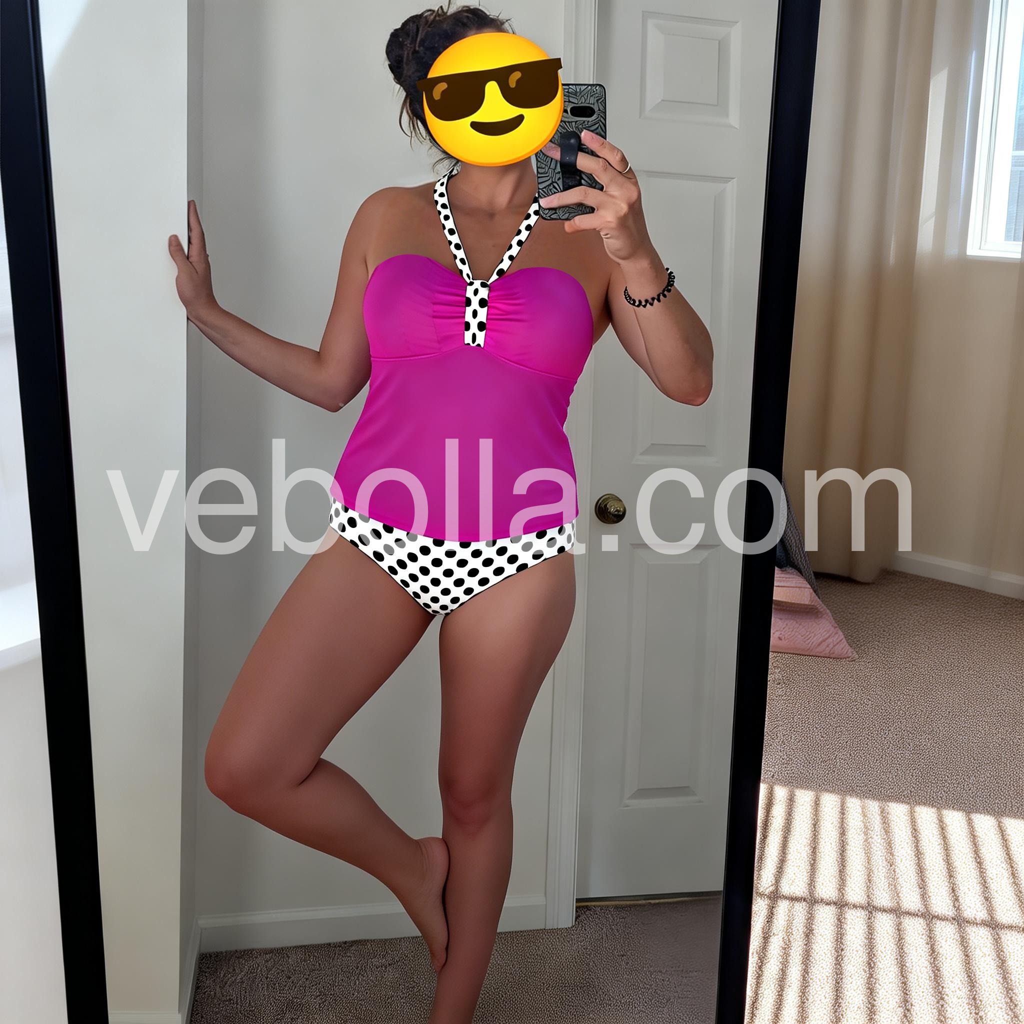 Showy Fuchsia Halter Polka Dot Swimwear