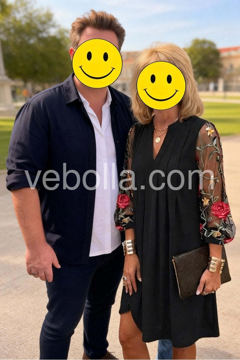 Elegant V-Neck Sheer Sleeve Mini Dress