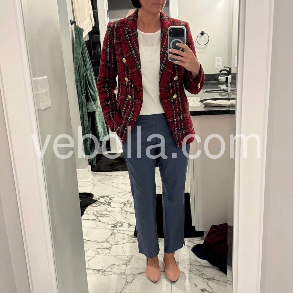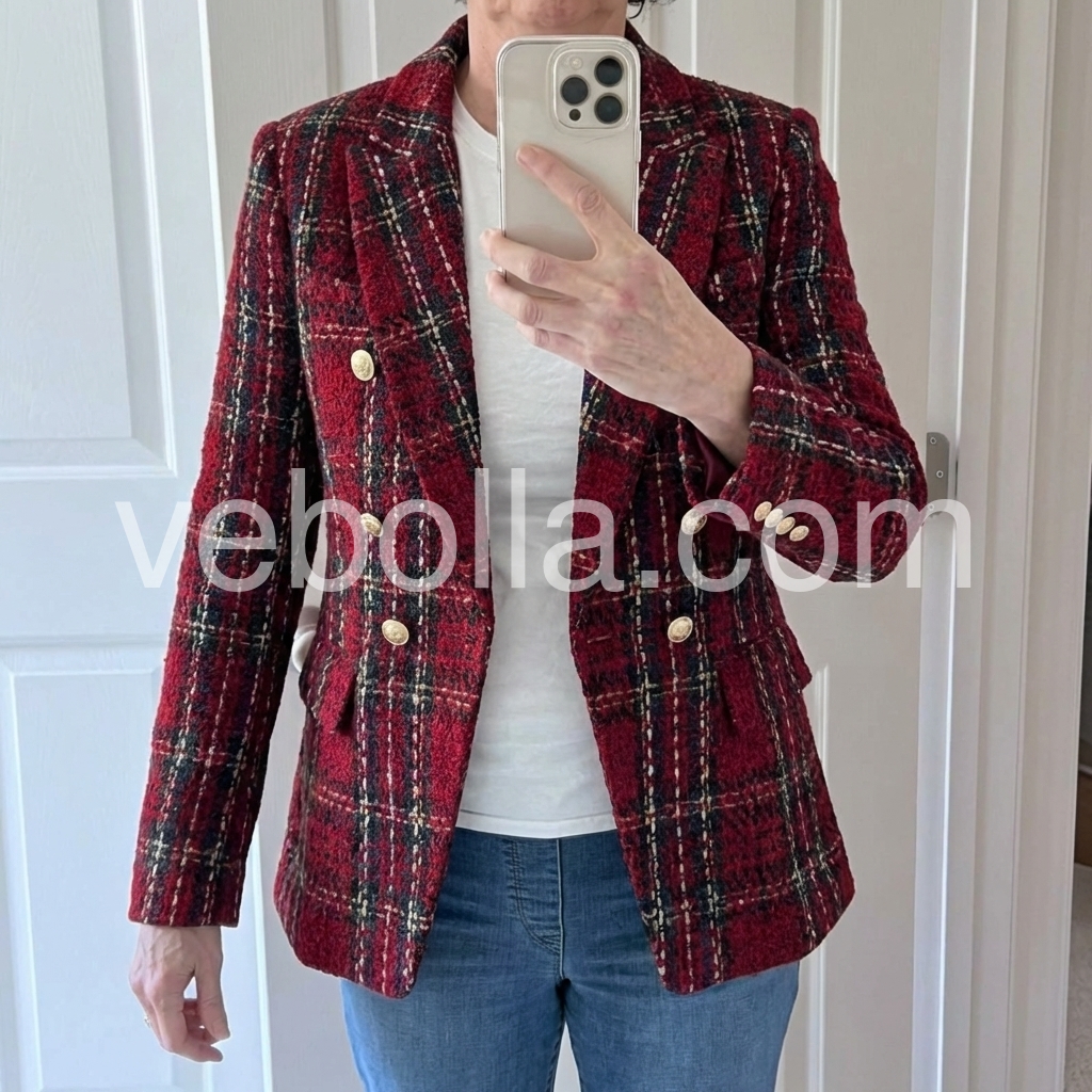Red Long Sleeve Check Blazer